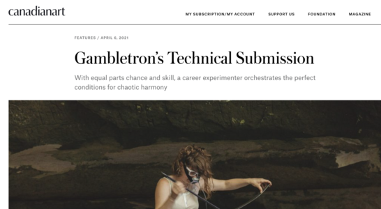Gambletron also works as a composer and musician composing electronic cues and scores for film and theatre. They are also a multi instrumentalist and a member of various music projects on Constellation Records. Gambletron can be found as touring musician with projects such as Hrsta, Nive Nielsen and the Deer Children, Carla Bozulich’s Evangelista.